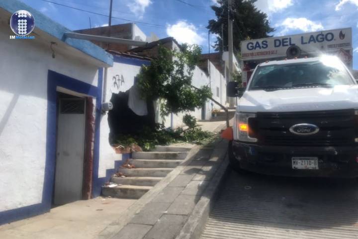 Camioneta gasera se estrella contra domicilio al sur de Morelia