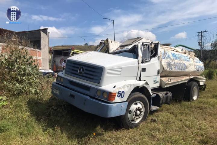 Un camión pipa de agua volcó en un predio cercano a la colonia Ciudad Industrial en la zona orie...