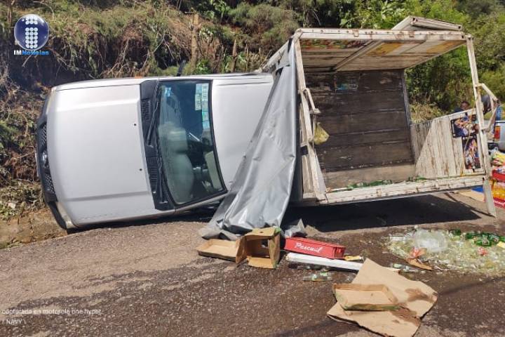 Una camioneta se volcó sobre la carretera Zitácuaro-Morelia, situación que generó la movilizac...