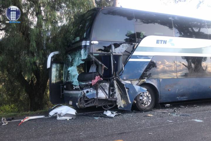 Un aparatoso choque de frente entre un autobús de pasajeros y una camioneta particular, dejo como...