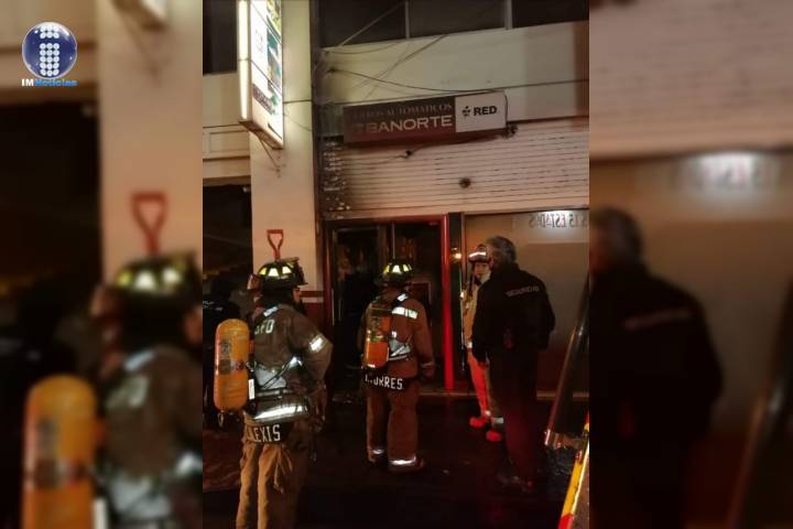Por motivos desconocidos un sujeto incendió los cajeros que hay en la sucursal bancaria Banorte, ...