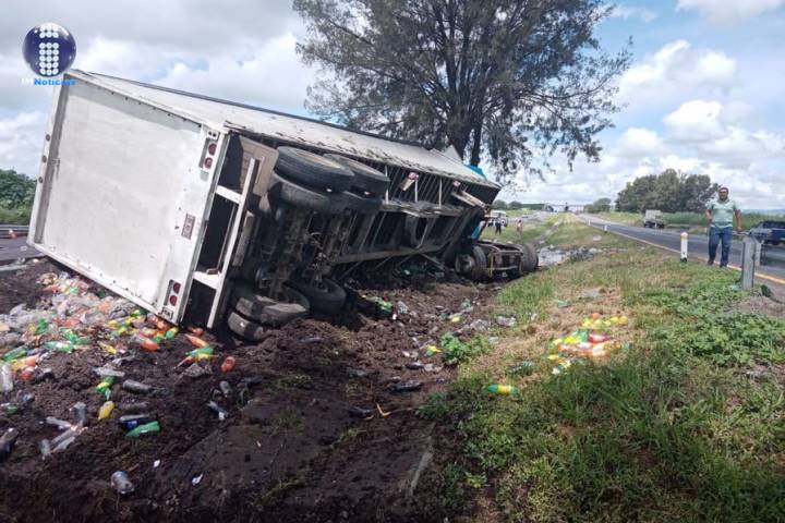 Un tractocamión se volcó sobre el tramo México - Morelia - Guadalajara, en la autopista de Occi...