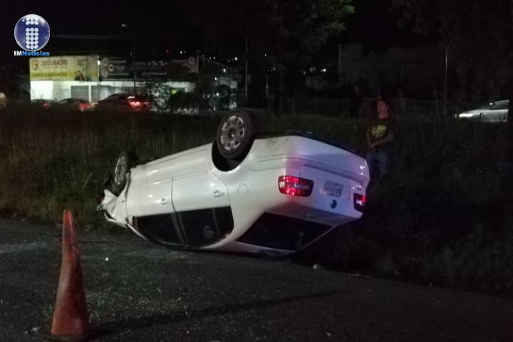 Un automóvil volcó y se impactó contra otros dos vehículos, percance que se registró la noche...