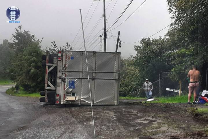 El conductor de un tráiler tipo caja, resultó lesionado, luego de que la unidad sufriera una apa...