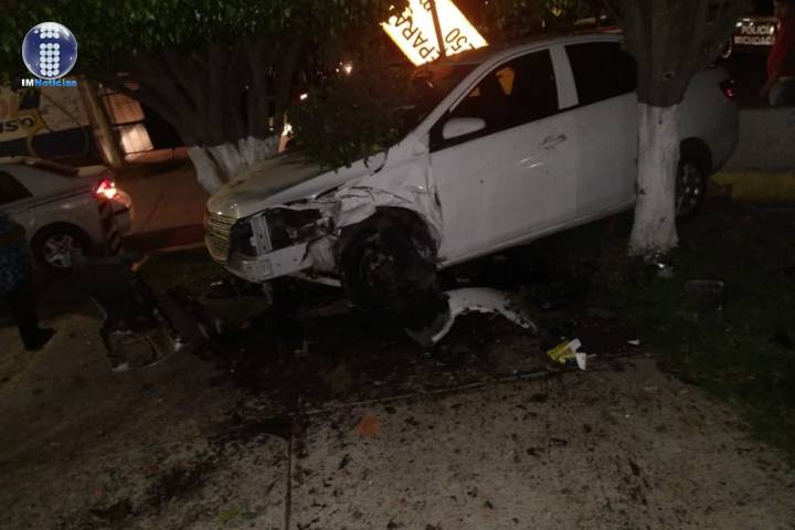 Un automóvil chocó contra un objeto fijo y atropelló a un hombre, quien quedó lesionado sobre la...