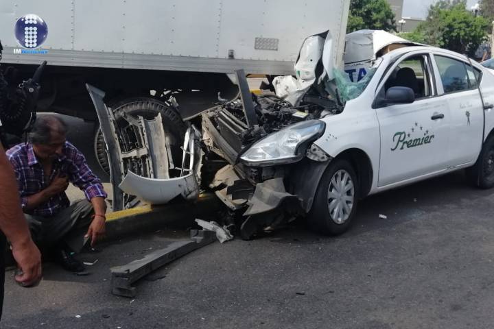 Un taxista resultó lesionado al momento de que su unidad chocó contra la retaguardia de una camion...