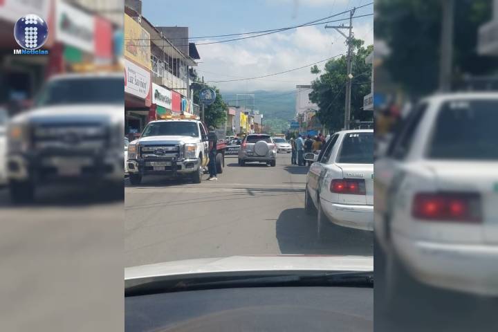 Una motocicleta y un automóvil se impactaron en el primer cuadro del municipio de Apatzingán, d...