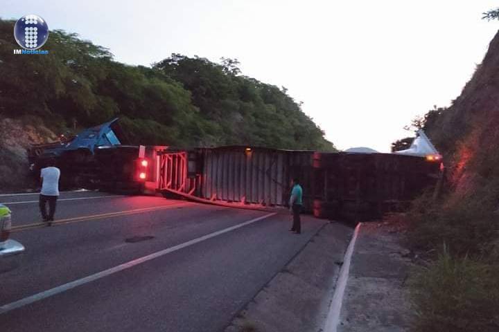 Se vuelca tráiler con contenedores y bloquea la autopista Siglo XXI