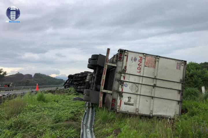 Tráiler vuelca en la carretera de cuota Pátzcuaro-Copándaro