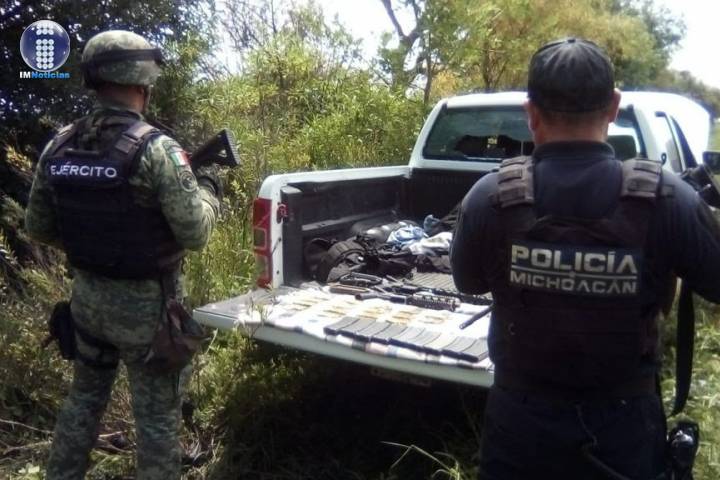 Aseguran SSP y Sedena 2 armas, 180 cartuchos, droga y un vehÃculo, en TangancÃcuaro