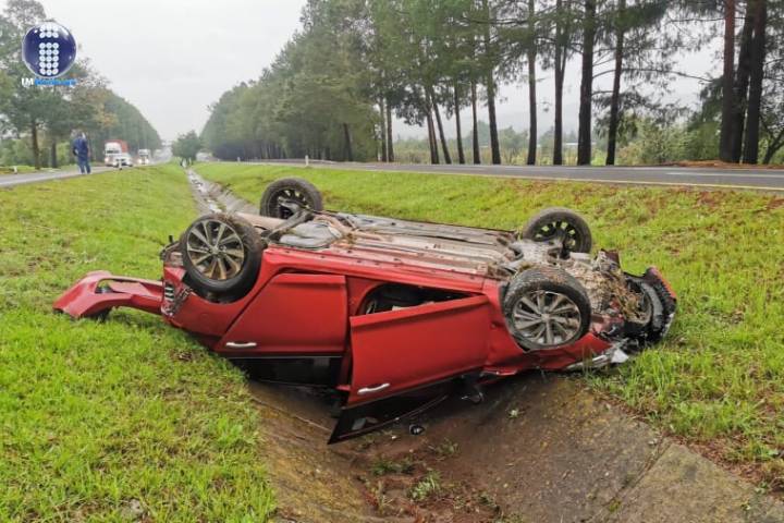 Un vehículo volcó tras chocar contra un objeto fijo en la Autopista de Occidente, dentro del mun...