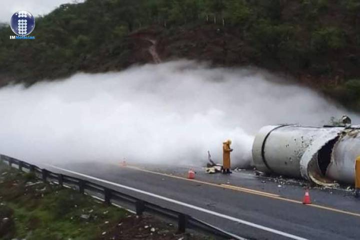 Un tracto camión cargado con una pipa cuyo contenido era bióxido de carbono (CO2) se volcó en l...