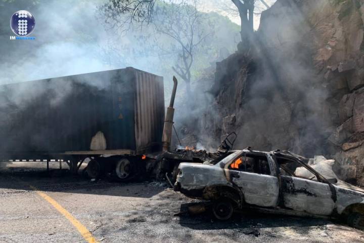 Arden dos tráileres y un taxi en accidente en el Puente del Marqués