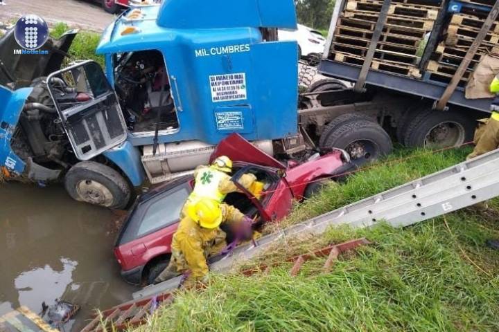 Cuatro personas resultaron lastimadas tras el choque entre un auto compacto y un tráiler sobre la...
