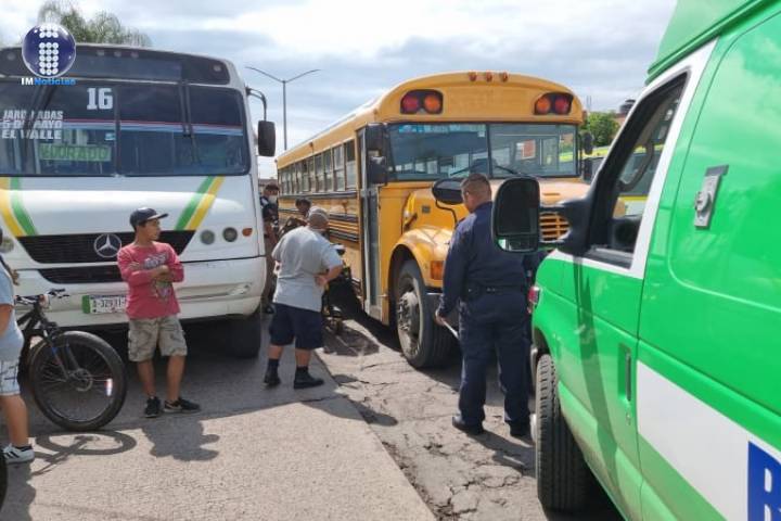 Un joven motociclista resultó lesionado del pie izquierdo, al quedar entre atorado entre dos camion...