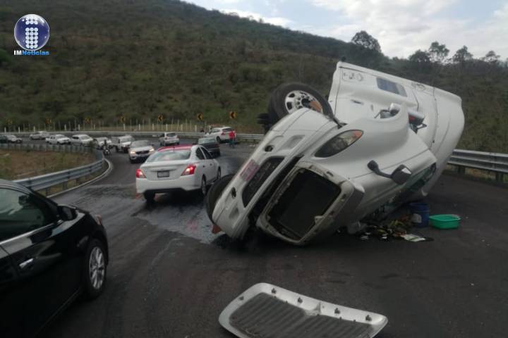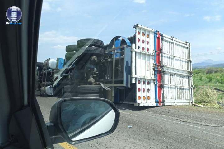 Un tracto camión se volcó en el municipio de Apatzingán, lo cual generó daños materiales y la...
