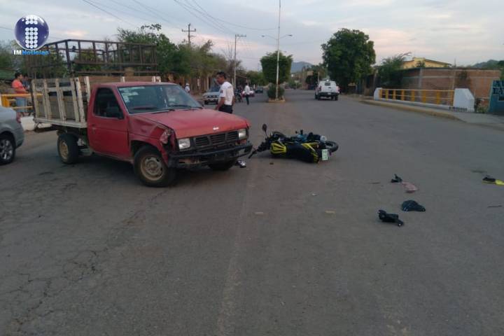 Se lesiona motociclista en choque contra camioneta