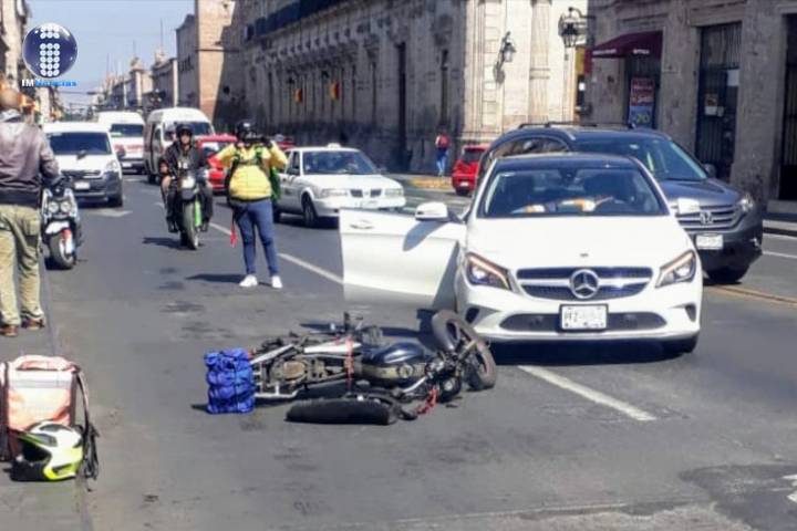 Automóvil y motocicleta protagonizan choque en el Centro