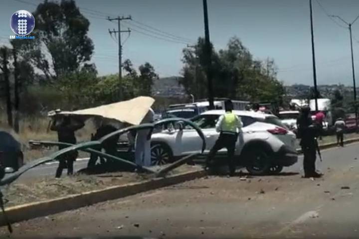 VehÃculo se estrella contra postes metálicos al poniente de Morelia