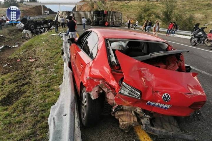 El choque entre un tráiler y un vehículo particular dejó como saldo dos lesionados, percance oc...
