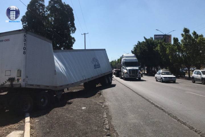 El remolque de un tráiler se dobló a la mitad cuando dicha unidad realizó una maniobra sobre el...
