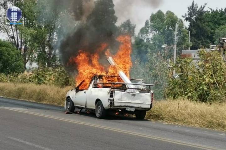 Arde camioneta en la Av. Héroes Anónimos, al poniente de Morelia