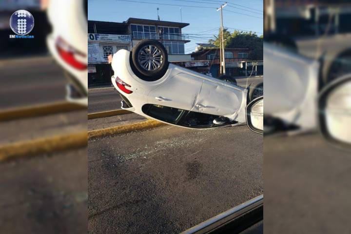 Se vuelca automóvil en la avenida Melchor Ocampo de Lázaro Cárdenas
