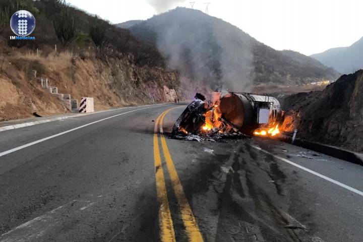 Un tráiler se volcó y se incendió en la Autopista Siglo XXI a la altura del municipio de Arteag...