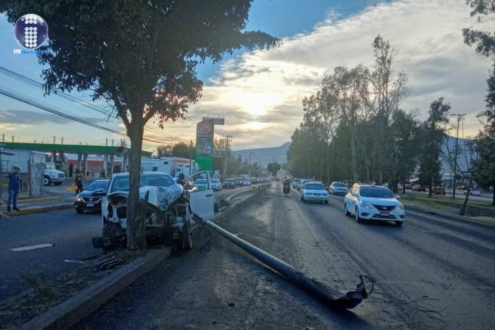 Camioneta choca contra poste y árbol en el periférico norte de Morelia