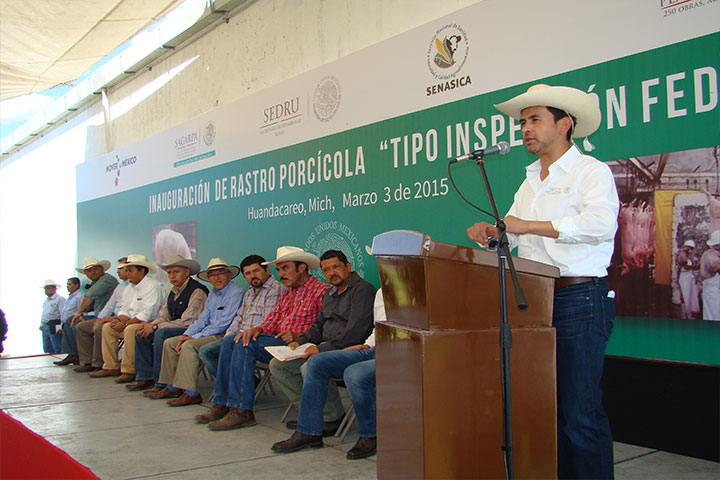 NOTICIAS 03/03/2015Inauguran rastro en Huandacareo El gobernador del estado Salvador Jara Guerrero y el subsecretario de Alimentación y Competitividad de la Sagarpa, Ricardo Aguilar Castillo, inauguraron el Rastro Tipo Inspección Federal (TIF), el cual es resultado del esfuerzo conjunto entre federación, estado, municipio y productores, para detonar el potencial porcícola de la región.