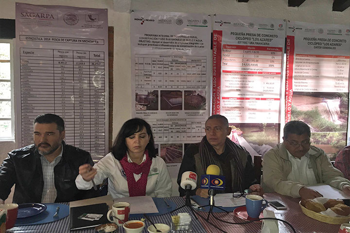 Jaime Rodríguez López, secretario de Desarrollo Rural de Michoacán, y Ricardo Aguilar Castillo, subsecretario de Alimentación y Competitividad de la Sagarpa, inauguraron en Cuitzeo una lonja pesquera que beneficiará a más de 900 pescadores y sus familias; además, revisaron en Huandacareo el funcionamiento de otros proyectos que pretenden aumentar las capacidades productivas en la región.