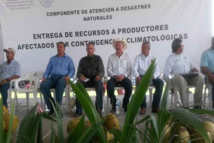 NOTICIAS 16/06/2014Entrega la Sagarpa apoyos a damnificadosEste día, la Secretaría de Agricultura, Ganadería, Desarrollo Rural, Pesca y Alimentación (SAGARPA), en Michoacán en coordinación con la Secretaría de Desarrollo Rural, hicieron entrega de 5.076 millones de pesos a mil 162 productores afectados por el huracán que azoto el año pasado a la costa michoacana; los apoyos son destinados a restablecer cultivos en 3 mil 766 hectáreas, cultivadas principalmente de plátano y coco.