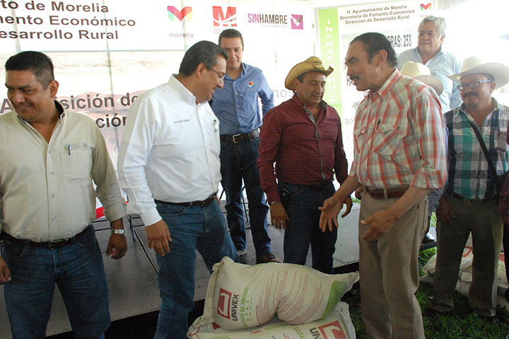Acatando la instrucciones del gobernador Salvador Jara Guerrero, de no perder ni un minuto para dar continuidad a los programas del Gobierno del Estado, el secretario de Desarrollo Rural, Jaime Rodríguez López; el director de Agricultura, Héctor Rojas Romero y el alcalde de Morelia Wilfrido Lázaro Medina, entregaron 385 toneladas de fertilizante químico a productores de este municipio.