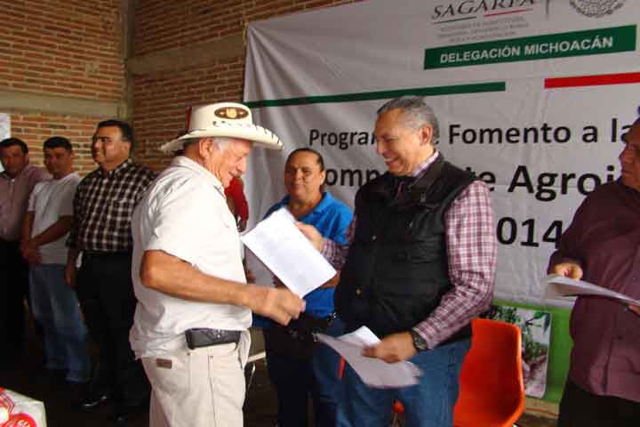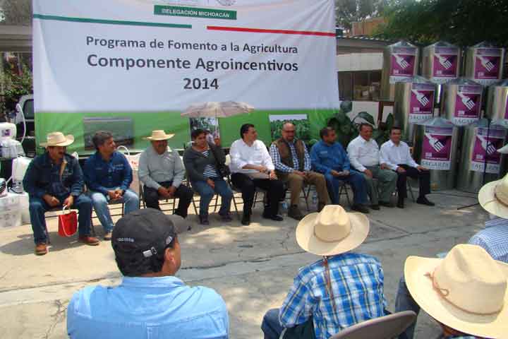 Con una inversión de 9 millones 336 mil 363 pesos, la Secretaría de Agricultura, Ganadería, Desarrollo Rural, Pesca y Alimentación (SAGARPA) en Michoacán, impulsa el cultivo de maíz en 2 mil 195 hectáreas; y se incorporan al riego tecnificado 85 hectáreas; además de poner en marcha en este municipio, el equipamiento de un centro de acopio de granos básicos en donde se almacena sorgo y maíz.