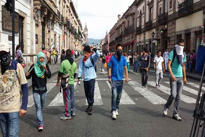NOTICIAS 15/10/2013Llegan normalistas al Centro; comerciantes cierran negociosDespués de marchar desde Casa de Gobierno y realizar diferentes acciones de vandalismo a su paso, arribaron al primer cuadro de la ciudad los normalistas.