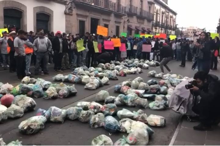 Recolectores de basura, se iniciaron una protesta afuera de las instalaciones del Congreso del Estado para protestar en contra de la medida impuesta por los legisladores, que prevé un costo por los residuos que van a dar al relleno sanitario.