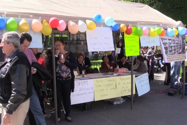 NOTICIAS 23/11/2017Se manifiesta SPUM en Plazas Públicas; dan asesoría a estudiantes Profesores integrantes del SPUM, se manifestaron este jueves en las principales plazas Públicas de la capital michoacana, donde, acompañados por estudiantes, exigieron a las autoridades nicolaitas resolver la problemática financiera que priva a la Universidad Michoacana de San Nicolás de Hidalgo.