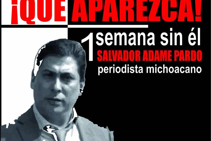 NOTICIAS 31/05/2017Como víctimas indirectas, interponen denuncia periodistas por caso Salvador AdameA 14 días de la desaparición de Salvador Adame Pardo, cerca de 90 periodistas de Michoacán, presentaron una denuncia en la Unidad de Secuestros de la Procuraduría de Justicia del Estado, como víctimas indirectas de dicho delito.