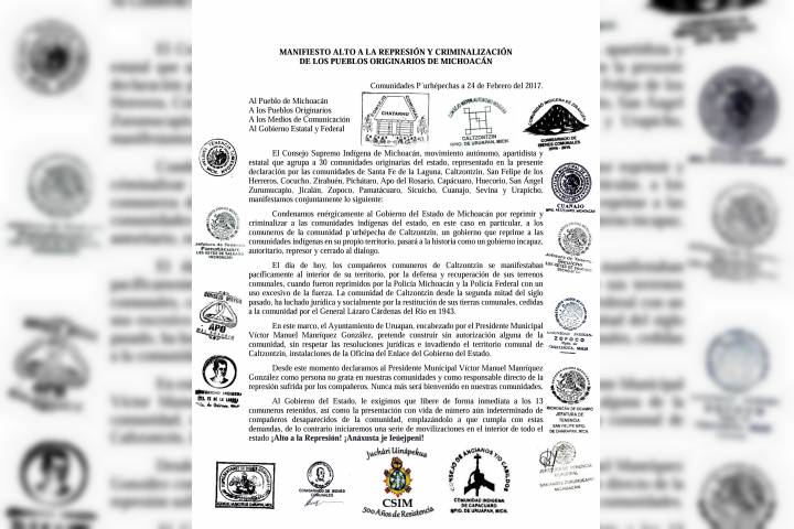 El Consejo Supremo Indígena de Michoacán, movimiento autónomo, apartidista y estatal que agrupa a 30 comunidades originarias del estado, representado en la presente declaración por las comunidades de Santa Fe de la Laguna, Caltzontzin, San Felipe de los Herre... Ver más...