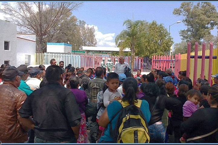 Padres de familia toman el Jardín de niños Hurendaro, con clave 6DJNO559B, situado en la tenencia de Santiago Undameo, en protesta porque la maestra Deneri Ibarra Mercado golpea y maltrata a sus alumnos.