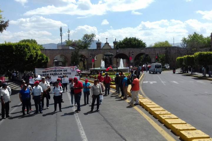 Los manifestantes iniciaron la movilización desde la fuente de Las Tarascas con rumbo a Palacio de Gobierno para solicitar respuesta a la petición de que sea destituido el edil de Ciudad Hidalgo.