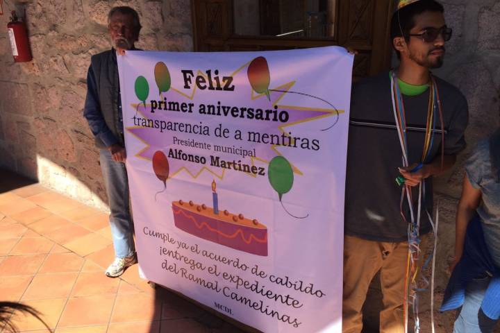 Con gorros de fiesta, serpentinas, confeti y un pastel, el Movimiento en Defensa de la Loma de Santa MarÃa, le cantó las mañanitas al presidente municipal, Alfonso MartÃnez Alcázar, ya que hoy hace un año el Ayuntamiento se comprometió a informar sobre el Ramal Camelinas.