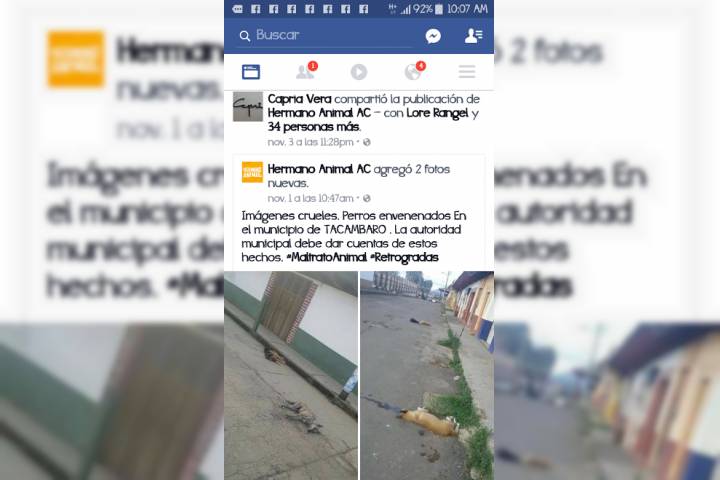 NOTICIAS 04/11/2016Denuncian envenenamiento masivo de perros callejeros en Tacámbaro y TuricatoGrupos de animalistas, independientes y organizados, denunciaron que en los municipios de Turicato y Tacámbaro se está dando el envenenamiento masivo de perros de la calle, incluso con el aval de las mismas autoridades municipales, sobre todo en el segundo de los municipios.