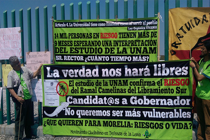"Venimos ha hacer del conocimiento de los candidatos al gobierno del Estado la crisis multidimensional que puede provocar la construcción de la vialidad en la Loma de Santa María" declaró Moctezuma Madrigal vocero del Movimiento Ciudadano en Defensa de la Loma (MCDL) durante el Foro "Educación pública, investigación y vinculación Gobierno-Sociedad-Universidad", organizado por la universidad Michoacana.