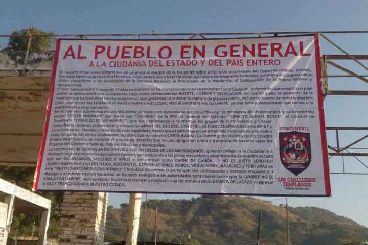 NOTICIAS 08/12/2013Aparecen mantas en Michoacán contra el general Oscar Naranjo