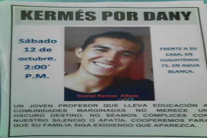 Daniel Ramos Alfaro, joven instructor del Consejo Nacional de Fomento Educativo (Conafe), quien desde hace cuatro años acude a pequeñas rancherías del rumbo de Betania para impartir educación, sigue sin aparecer desde el pasado miércoles 2 del presente mes; sus familiares dijeron que existe una denuncia ya en la Procuraduría de Michoacán, pero reclamaron que las autoridades no han hecho absolutamente nada.