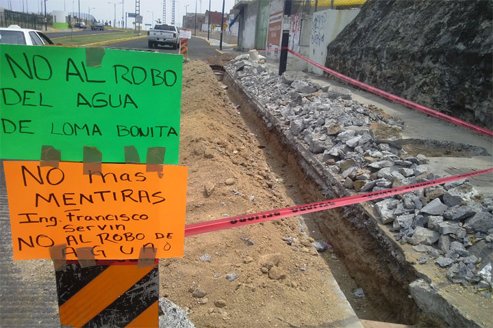 Colonos del Infonavit Loma Bonita exigen se les resuelva un problema de agua, ya que explicaron que un nuevo desarrollo habitacional a cargo de la empresa INVISA, que afirman pertenece al ex presidente municipal Manuel Nocetti, coadyuvará a que el Infonavit reciba menos agua.