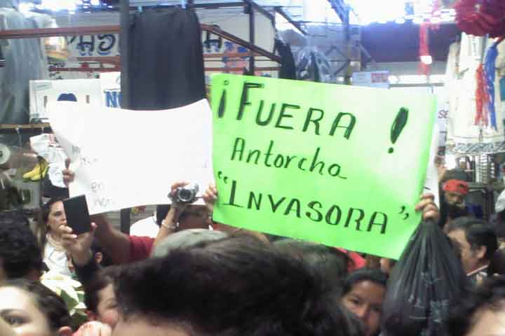 Durante el arranque de la campaña Vivan los Mercados, integrantes de la Unión de Comerciantes 5 de Febrero se manifestaron en contra del Movimiento Antorchista, aseguran que alrededor de 100 comerciantes de la asociación fueron desplazados de sus puestos.