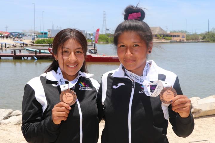 Ximena Camino Quirino y Virginia Quirino Medrano se colgaron medalla de bronce al cronometrar 2.31.47 minutos en la prueba de C2 500 metros, categorÃa Juvenil Mayor. El oro fue para Baja California con 2.30.40 y la plata para Jalisco con 2.30.75.