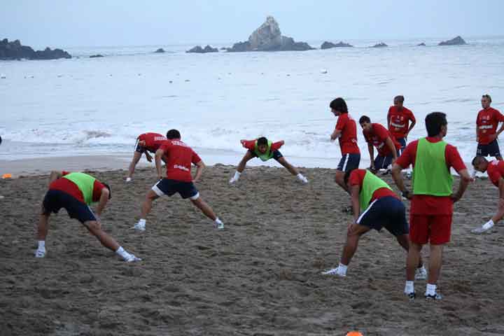Los elementos del cuadro rojiamarillo se dieron cita en la playa del hotel sede para dar inicio con los trabajos; después de un ejercicio recreativo que sirvió como calentamiento, dieron paso al aspecto fí... Ver más...